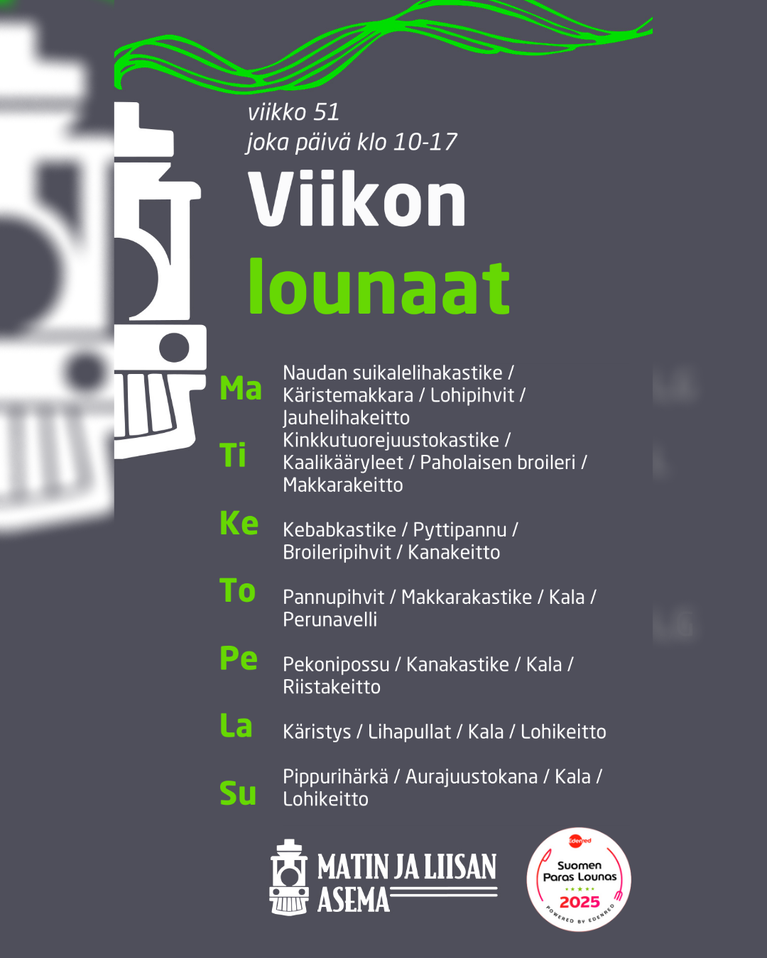 Matin ja Liisan Aseman herkullinen lounas valittiin Edenredin yleisöäänestyksessä Suomen Parhaaksi lounaaksi vuonna 2024 sekä uudestaan vuonna 2025!